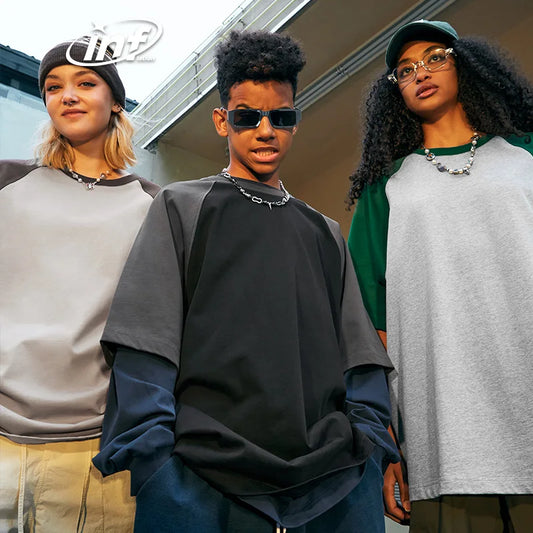INFLATION Raglan Sleeve Minimalist Colorblock Oversized T-shirts