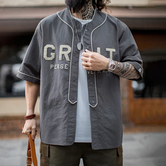 New Retro Preppy Style Half Cardigan Short Sleeve Shirt