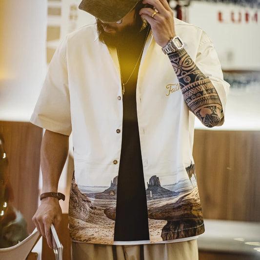 'Faith' Embroidered Vintage Inkjet Print Short Sleeve Shirt