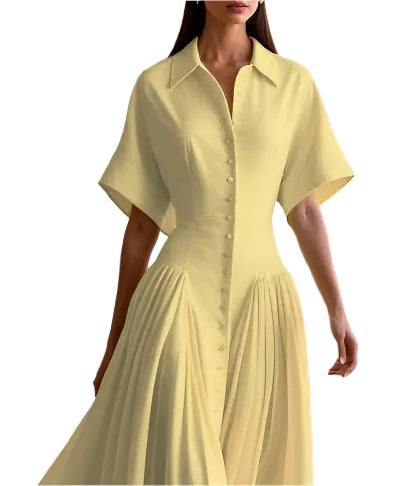 Elegant Buttoned Midi Lapel Flowy A-Line Shirt Dress