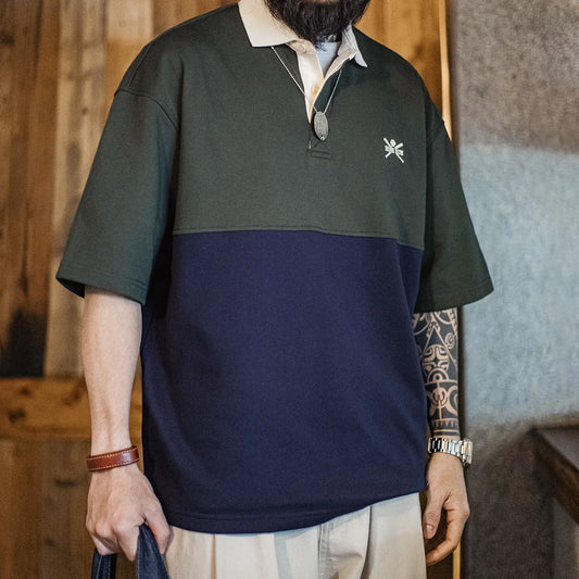 Vintage Colour-Block Short Sleeve Polo Shirt