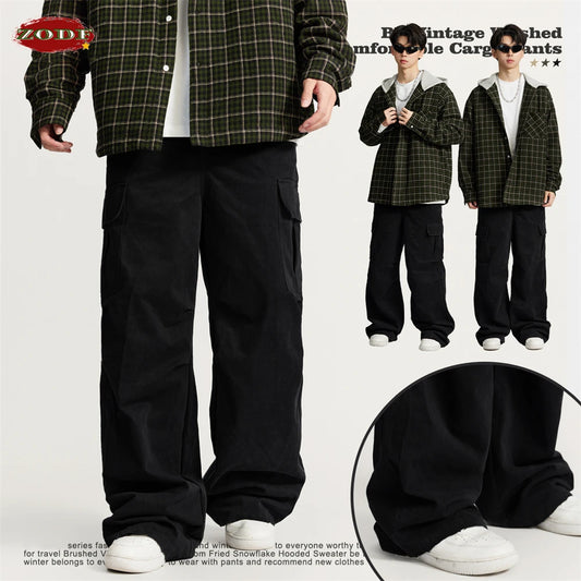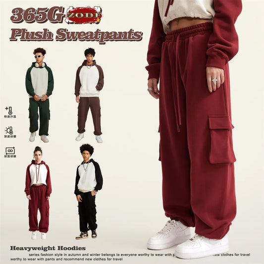 ZODF Retro Loose Solid Warm Fleece Sweatpants