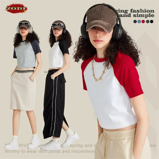 ZODF O Neck Sporty Style Raglan Sleeve Tee