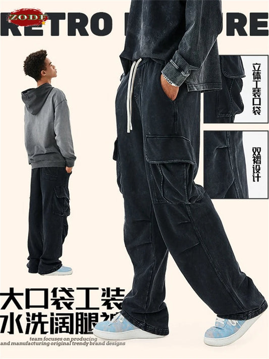 ZODF Heavy-Weight Ripped Wide Leg Straight Trousers
