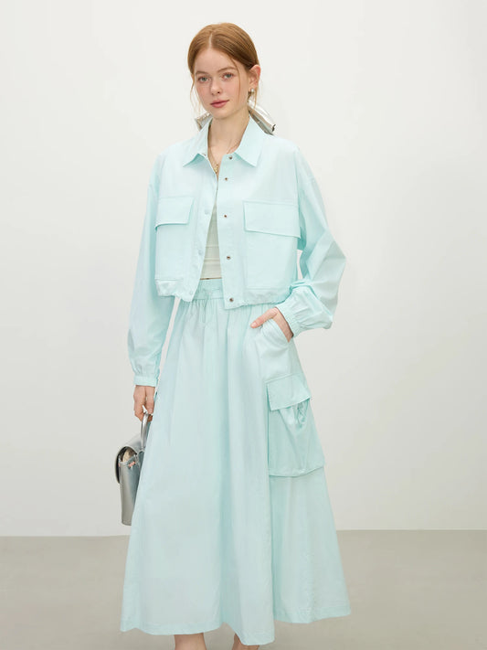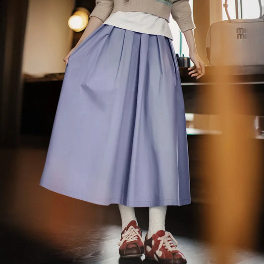 Solid Color Elastic Waist Zip Up Pleated Skirt