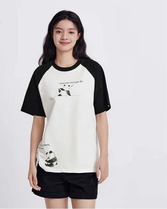 Raglan New Version Panda-themed Pure Cotton T-shirt