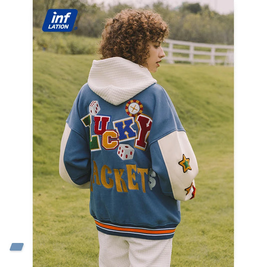INFLATION Towel Embroidery Oversized Bomber Jacket