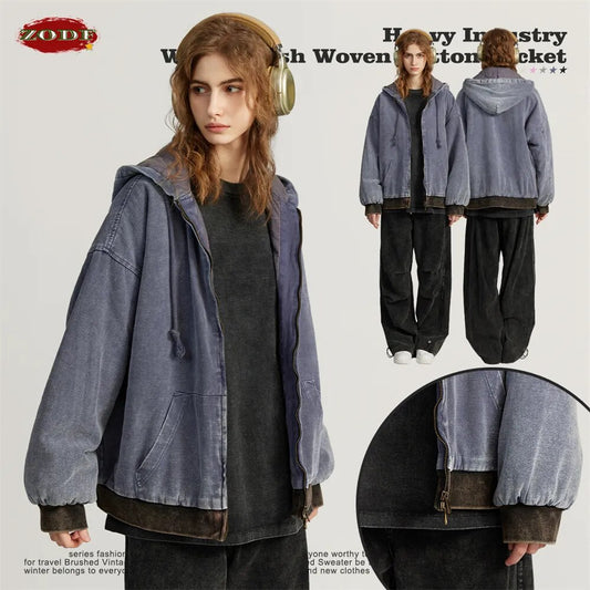 Retro Color Block Patchwork Oversized Windbreaker Jacket