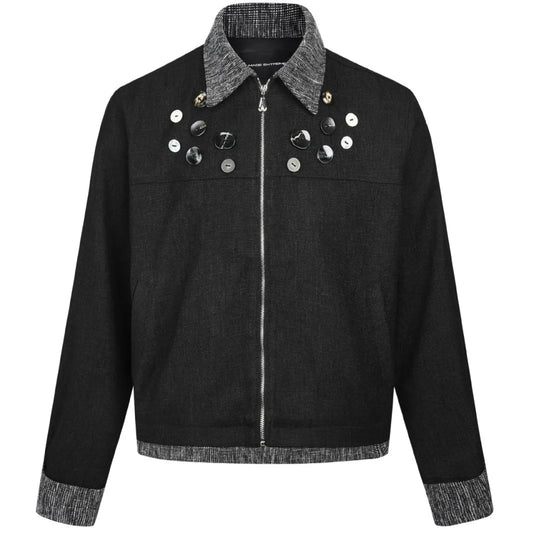 Shell Buckle Jacket Short Lapel Contrasting Varsity Jacket