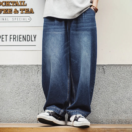 Vintage Washed Oversize Whisker-Featured Casual Jeans