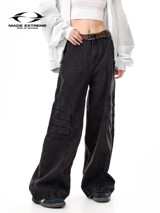 IEFB Vintage Gradient Color Straight Wide Leg Jeans