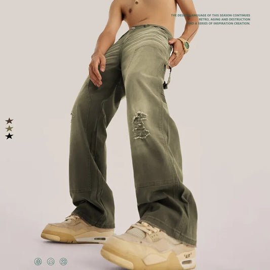 IEFB Harbor Worn Out Wide Leg Distressed Vintage Baggy Jeans