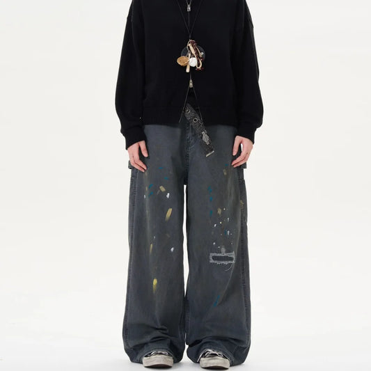 Ink-splashed Overalls Men's Washed Baggy Jeans