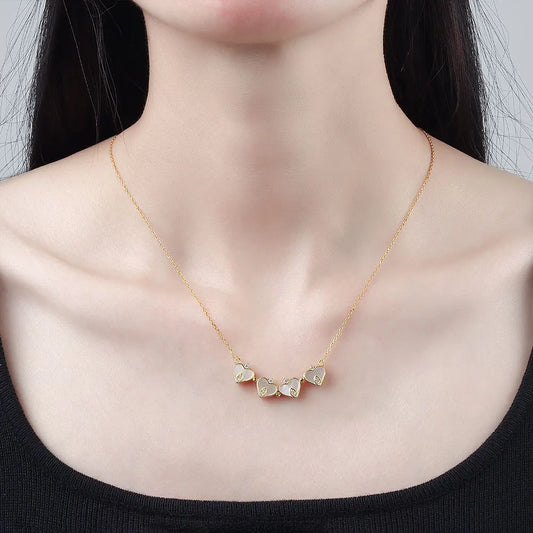 Four-Leaf Foldable lover Necklace Shell Zirconia Heart-Shaped Openable Necklace