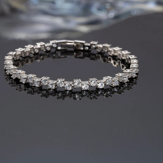 14K Gold and 925 Sterling Silver Tennis Bracelet for Women