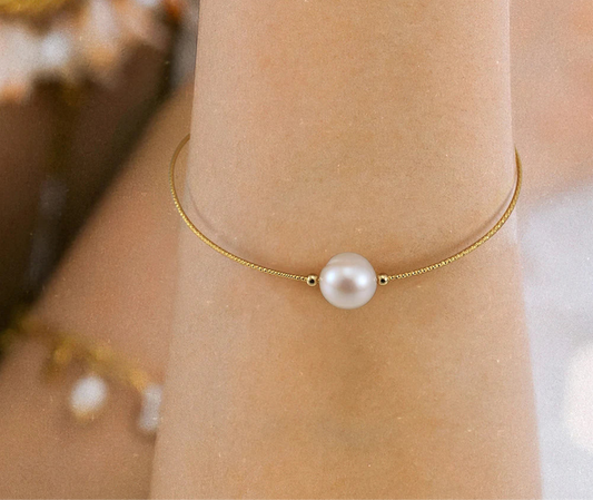 14K Gold Plated 925 Sterling Silver 8mm Natural Freshwater Pearl Chain Bracelet