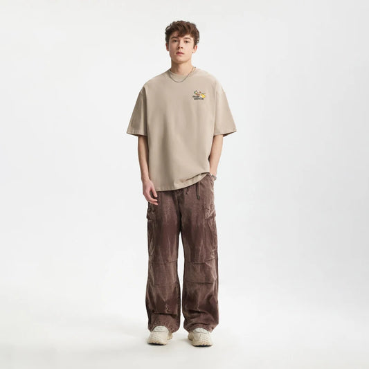 High Street Unisex Retro Broken Edge Oversized Washed T-shirt