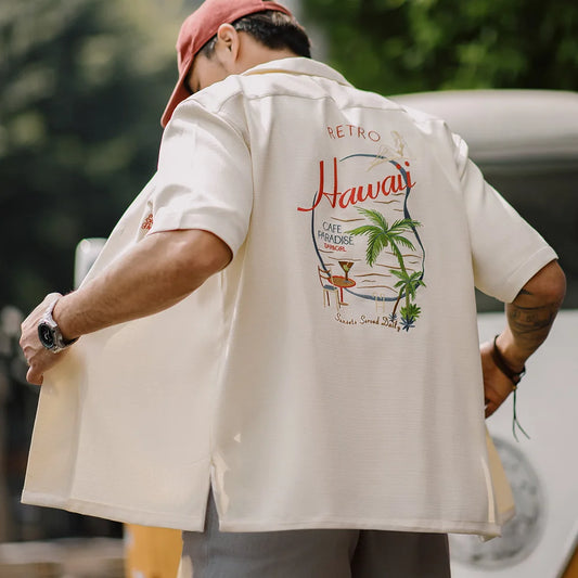 Summer Hawaiian Embroidered Short Sleeve Shirt